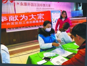 据了解,本次活动是开发区总工会首次开展志愿服务周,其中特色志愿服务队由复兴博爱眼科、皓尔口腔、博济体检、晨飞雁通讯等6支队伍组成。开发区总工会自2016年搭建开发区志愿服务平台,区内企业开始逐步成立服务队,今年将征集到的有意愿从事公益志愿活动的志愿服务队形成规模走进园区、企业。总工会帮扶中心工作人员李艳飞告诉记者:“其实,志愿服务一直在进行中,每个月都会进行小型服务活动,截至目前已经有20余家企业享受到总工会带来的志愿服务。但本次志愿服务周是首次有规模地将6支志愿服务队组织在一起形成大队伍集中将服务送进企业,切实把志愿服务送到职工的心坎去。”据悉,开发区总工会计划将更多地走进企业为职工送健康、送法律、送温暖,更大范围惠及职工群众,推动志愿服务事业实现常态化。
