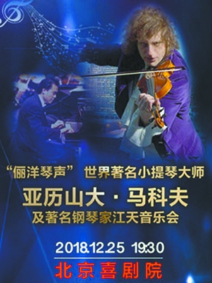 音乐会 | 《俪洋琴声》 时间:12月26日 地点:北京喜剧院 简介:由世界上少有能在一个独奏会上完成24首帕格尼尼随想曲的美国小提琴家亚历山大·马科夫,携手曾与伦敦爱乐交响乐团、英国皇家爱乐交响乐团等合作演出的钢琴家江天共同演绎。