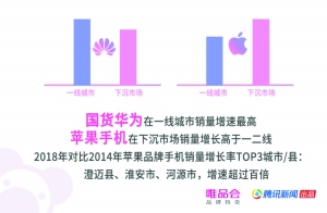 一二线城市消费者的“理性”,体现在他们对价格的敏感度提高。一方面,一二线城市用户追求“买得精、买得少、买得好”,在大促中的人均消费额明显高于下沉城市用户。另一方面,一二线城市消费者不再一味追求国际大牌,这也对国产品牌形成了利好态势。以华为手机的“逆袭”为例,2017-2018年,唯品会平台上华为手机在一二线城市的销量增速分别为96.3%、61.68%,远超苹果手机。