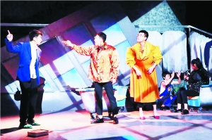 五个演员、十几个角色,小剧场话剧《我是余欢水》究竟怎么完成角色的转换?你可能会说快速换衣服,通过服装、道具来回转换角色,这是最基本的手法,比如该剧中只要换上蓝西装就是余欢水,只要换上裙子就成了梁安妮,或者余欢水的老婆;又比如戴上老花镜就成了余欢水的丈母娘,摘下眼镜就成了余欢水的老婆,通过一个眼镜来区分角色,秒变角色。