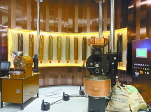 LUXE门店内还设有咖啡豆烘焙机,消费者可以根据自己的喜好选择相应的生咖啡豆、烘焙程度以及冲煮方式。目前主要提供两种生咖啡豆,分别是埃塞俄比亚的夏奇索和古姬PB紫。顾客也可预约烘焙,之后到店自取。