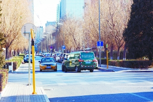 接到群众反映后,记者根据几位市民反映的位置来到荣华东二路,上午8点,在北京博大投资开发有限公司附近,记者看到由于道路西侧已经改划为停车位,道路东侧占道停车现象已经极为罕见,但确实发现有骑行车辆和机动车不按交通规则行驶。