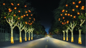 走进开发区,人们不禁被浓厚的节日氛围所吸引。博大公园广场大红灯笼高高挂,红色象征着喜庆吉祥,天地风霜尽,乾坤气象和,通过灯光的装饰,展示出景物华美、喜迎佳节的热闹景象,也预示着寒冬将逝,风霜即尽,博大广场中心的大红灯笼墙,搭配中心的春字,营造红红火火的中国年;“改革春风遍神州、金灯银灯挂满树”,科慧大道的树形较规整,灯光将树冠部分缠绕,体现整齐的枝干,同时悬挂红色五星;火热荣华节日的街道上车如流水马如龙,火树银花十里开。星河明朗,清月如水,与璀璨灯光相互交映,通宵灯火人如织,千红万紫报春光,通过灯光传递出吉祥如意的美好愿景;年味十足的荣华街,两侧灯杆延续使用灯笼造型,中间隔离带铺设网灯,并增加腊梅枝做色彩点缀,欢迎游子归来。