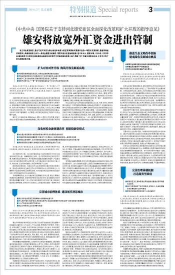 雄安将放宽外汇资金进出管制