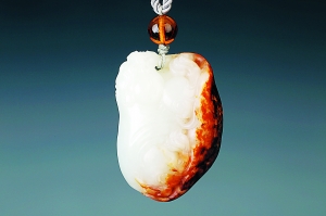 真正的和田籽料经过千万年的撞击、磨擦后,得以沉积,呈鹅卵状,包裹略厚且呈凹凸不平的橘皮状构造,由于籽料每次受到的撞击力度不一样,表面的磨蚀坑也大小不一。而人工仿制的石皮较薄,没有明显变化。
