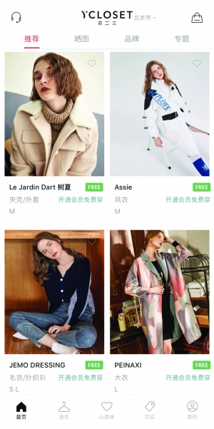 ■新物种 只需注册一个账号,每月几百元的支出,即可免费租衣。这种新兴的租衣模式已受到众多女性追捧。目前,国内的共享衣橱主要有衣二三、托特衣箱、女神派等。