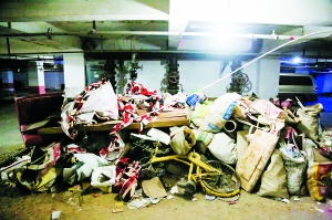 上海沙龙商圈的地下停车场,一出匝道就是一堆高耸的垃圾,除了影响环境外,还存在着严重的安全隐患。
