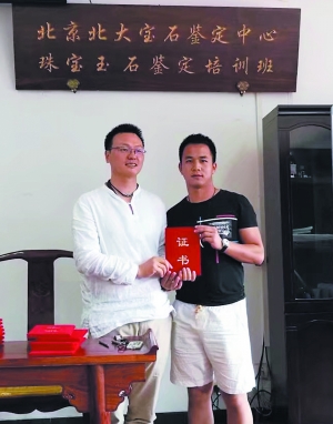 潘家园北大珠宝玉石鉴定培训班第八期学员,杜学义,是“芳泽轩”珠宝店的老板、珠宝鉴定师,也是中央电视台《一槌定音》节目中的高参之一。