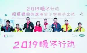 2019年3月25日,暖冬行动爱心探访团走进昭通捷豹路虎希望小学。包括捷豹路虎中国首席财务官于钧瑞(Arthur Yu)、公共关系及企业传播执行副总裁王燕、中国宋庆龄基金会基金部公益合作处处长王刚玉、爱心车主、员工代表和媒体朋友一行近60人来到学校,参观学校软硬件建设情况,并且2019暖冬行动捐赠的淋浴间和卫生间设施正式开工启动。