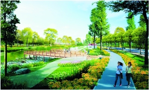 与通惠排干渠、蓄滞洪区清淤工程同步实施的还有该区域的景观提升及绿道工程,这也是亦庄新城滨河公园二期建设的一部分,建成后,这里将成为一个集雨水资源化利用、径流峰值流量调节和生态景观为一体的多功能调蓄湿地公园。