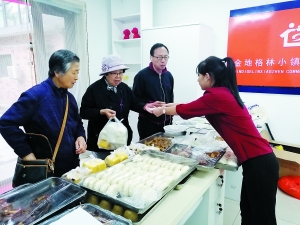 说起这“便民厨房”进社区的缘由自然离不开居民的需求。金地格林社区居委会主任崔军介绍,社区居民中老年人占比不少,一日三餐都喜欢在家做着吃,但像馒头、卤味等一些食物的加工、制作对他们而言耗时耗力,去市场或者老年食堂买又得过马路、坐公交。“老年人腿脚不好,所以就有居民反映能不能在社区里建个点,为大家提供便利。”崔军说。得知居民需求后,今年初,居委会开始寻找区内有资质的可提供长期驻点送餐的餐饮单位,最终与共建单位便宜坊达成合作,就具体便民形式进行商讨。为满足社区居民家门口实现方便快捷购物的需求,居委会将社区内的棋牌活动室作为固定餐饮售卖场地,由便宜坊于每天16:00至19:30送餐到指定地点为居民服务。