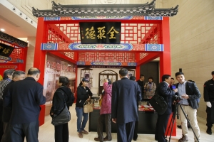 据全聚德展台工作人员介绍,全聚德参加这次非遗展,是将老匾、老铺、老炉这三“老”都“搬”到了展厅。展台上方悬挂着百年老字号“全聚德”的牌匾,正面和侧面则分别以大幅画面,布置成全聚德前门老铺和全聚德卦炉烤鸭的面貌。展柜中陈列着《全聚德菜谱》、《全聚德与国际友人》、《全聚德故事》以及《嬗变之路》等书册,记录着全聚德独特的技艺文化传承与创新。