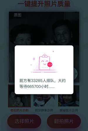 一款标榜“AI图像增强”的微信小程序“你我当年”于近日意外走火。通过其上传模糊老照片,可获得免费处理的清晰版本;而多组明星童年照、旧照的处理前后效果在网上引发广泛传播与热议,“明星童年修复照”一度以3亿次加阅读量登上微博热搜。小程序使用峰值期显示,“前方有33285人排队,大约等待665700小时”。小程序产品设计者、北京大觥科技公司技术负责人袁泉向北京商报记者解释,排队70年的计算失误只当是一个小玩笑,最初被当做业内Demo使用的“你我当年”的走火实属意外;而与市面盛行的美颜软件相比,主打AI神经网络图像处理的黑科技技高一筹。