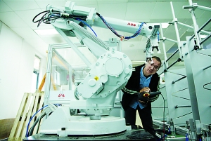 走进博联众睿研发实验室,就会发现实现0.1毫米精密装配不足为奇。在实验室一角,一台在研机器人手臂上加装了一个摄像头装置,研发人员告诉记者,这是工业视觉装置,视觉装置本身具有较高精度,在研发中通过加入自主研发的算法,结合工业控制技术,使机器人整体精度可达到十微米级,而公司这种独特的机器人曾经为一家企业的无线电定位装置装配提供过支持,将1000多个探测装置装配到2×2米的盘型仪器表面上,探测线高度聚焦到中心原点形成一束探测线,达到了较高的探测性能。而这样视觉+工业控制技术的机器人,将用于此次新建汽车高精密装配产线上。