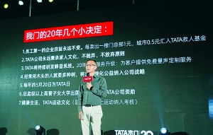“员工第一的企业宗旨永远不变、永远秉承家人文化、发布‘量声定制’战略、经常用木头的人就要多种树、每年的5月20日为全国TATA日、培养新一代TATA人、将运动纳入考核……”星空下,草坪前,纵瑞原激动地抛出一个又一个决定,像是对TATA家人们的承诺,又像是对他们的期许。