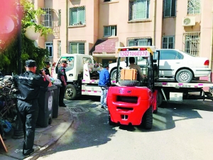 本报讯(融媒体中心记者 于晓玲)5月20日,荣华街道联合开发区交通大队、天华路派出所、天华园一里社区及社区物业共同出击,对天华园一里社区的听涛雅苑、梅园两个小区内长期停放的3辆“僵尸车”进行了清理。