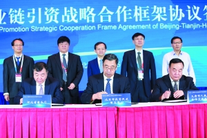 5月29日,在2019年中国国际服务贸易交易会期间举办的“2019投资北京洽谈会暨京津冀投资推介会”上,北京市投资促进服务中心、天津市人民政府合作交流办公室和河北省商务厅共同签署了战略合作框架协议,建立了京津冀产业链引资合作“三方协同”工作机制,这标志着京津冀产业链引资工作进一步形成合力,三地投资促进机构将共同探索京津冀产业链引资合作模式。