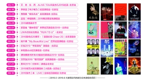 6月15日起,UNINE粉丝见面会、张艺兴「大航海」巡演、张杰【未·LIVE】全球巡演、陈绮贞20周年「漫漫长夜 Cheer 20」巡演、杨千嬅“My Beautiful Live”巡演、林宥嘉idol巡回演唱会、许嵩2019“寻宝游戏”演唱会等多个知名演唱会将陆续登陆北京,激情开唱。