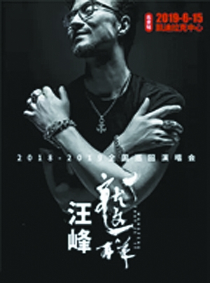 演唱会 《汪峰2019“就这样”巡回演唱会》 时间:6月15日 地点:凯迪拉克中心 简介:谈起汪峰和北京的联系,除了《晚安,北京》和《北京北京》两首家喻户晓、荡出众多北漂心声的歌曲外,或许就是两次开唱8万人“鸟巢”的辉煌历史了。但这一次,48岁,已经经历过数十场体育场巡演后的他,却要再一次挑战自己。