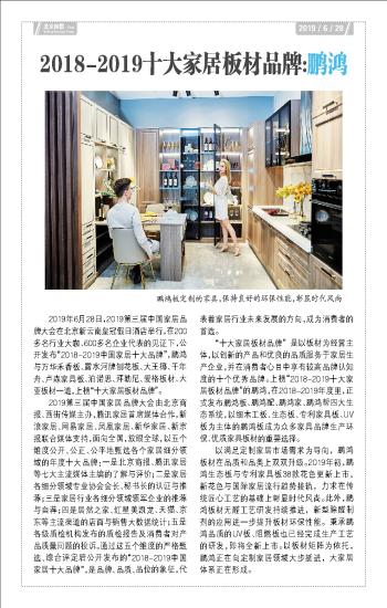 第T334版:2018-2019十大家居板材品牌:鹏鸿