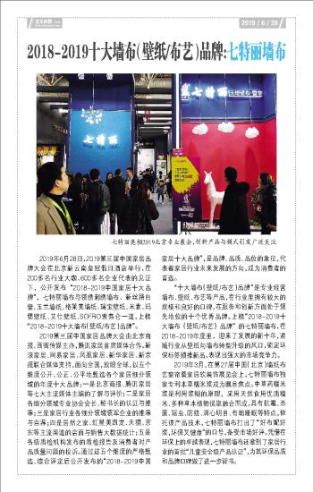 第T282版:2018-2019十大墙布(壁纸/布艺)品牌:七特丽墙布