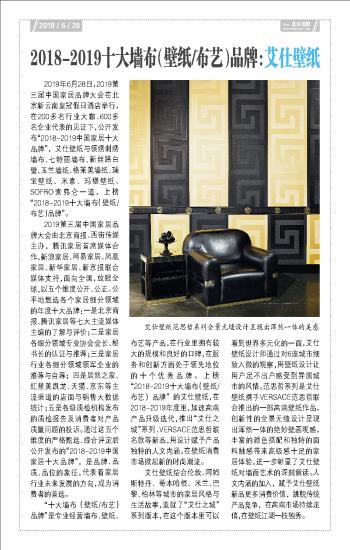 第T289版:2018-2019十大墙布(壁纸/布艺)品牌:艾仕壁纸