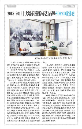 第T290版:2018-2019十大墙布(壁纸/布艺)品牌:SOFRO索弗仑