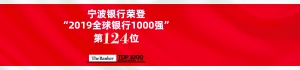 7月1日最新的《银行家》杂志 (The Banker)公布的“2019年全球银行1000强”最新榜单上,宁波银行以一级资本117.69亿美元排名第124位,较上一年度上升42位,在中资银行中排名第20位。