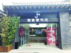 近日,北京商报记者在东城区交道口南大街28号发现一家名为“J+”的智能便利店。该店面积为80平方米,便利店中有800余种SKU单品,其中包括生活日用、休闲零食、母婴用品等商品。