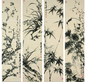 陈先生画竹,也是取“自得其乐者”为上。古人曰: 可以食无肉,不可居无竹。现在公寓居多,则可画竹以征其意。爱竹之心,古今相同。然自文与可以来,画竹者不可计数,或清或逸,或秀或奇,或闲或思,或离或即,皆与文化精神紧密结合。陈先生之竹,当是师从梅道人及板桥先生,无论枝叶排列,气韵天成,皆自有书卷气漫溢其间。板桥道人学石涛画,曰学一半,丢一半。其实此真学者之言也。所以,且放下一切杂念,仔细品读陈先生的竹子,确实会有一种豁然开朗的情绪,不需要更多地考虑喧嚣之扰,只需敞开胸怀,侧耳倾听,即有清风徐来,竹枝交嘎之声。此亦宗文炳所谓“卧游”者也。