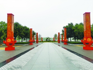 进入公园南大门广场,呈现眼前的是10对朱雀彩柱,象征南海子“喜迎五海宾朋,笑纳八方游客”。广场正前方,矗立着一座四柱三间七楼重檐歇山斗拱式牌楼。牌楼正中匾额上镌刻乾隆御笔“南海子”三个金色大字,牌楼周身为金龙和玺彩绘,更显庄严大气。