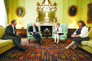 软硬兼施也是必须的手段。为了获得支持,约翰逊甚至不惜花重金安抚。在首次出访苏格兰时,他提出了一项3亿英镑的针对苏格兰等三地的投资计划,并打算与北爱尔兰政党领导人商讨重建地区政府。