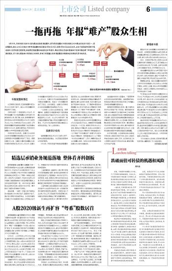 一位券商人士告诉北京商报记者,因疫情影响,监管层允许确受影响的个股延期披露2019年年报但不能迟于6月30日,体现了监管层坚持以人为本,对上市公司的呵护。“部分确受疫情影响严重公司延迟披露年报无可厚非,不过对于投资者而言则要注意部分公司的投资风险。”该人士进而表示。