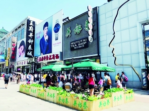 位于大街东侧。这家店不仅仅是茶庄,更是一个茶文化体验馆。一层除了有茶叶、茶具销售柜台,还对外开放了销售茶饮、冰激凌的窗口。天气升温,逛王府井的时候可以带上一杯老吴的冷饮。吴裕泰还在王府井店二层设置了体验区,展示茶工艺、茶文化。