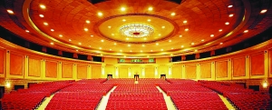 作为北京客容量最大的专业演出剧场,北展剧场的观演大厅直径达到62米,且据北展剧场官方网站,最初北展剧场是一个露天剧场,后加顶改建成室内剧场,共设有43排2763个座位。舞台面积达400余平方米,台口宽17.7米,高10米,后台共有6间演员化妆间,可供200余人同时化妆使用。剧场乐池总面积80平方米,可容纳70余人的乐队,具有符合声学要求、美观实用及延伸舞台表演区的功能。观演大厅为圆形的场地,带有木制墙面的吸音装置,这为剧场提供了天然声场效果,更突出辽阔、气派的感觉。