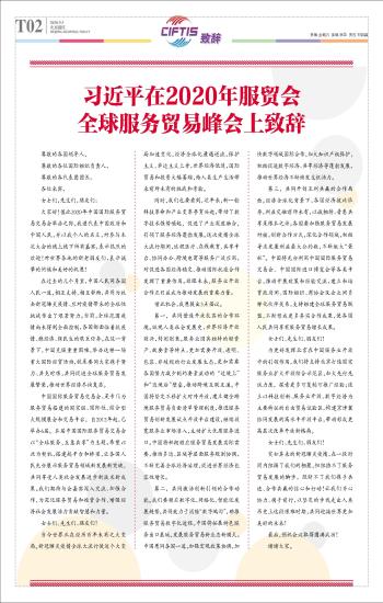 习近平在2020年服贸会 全球服务贸易峰会上致辞