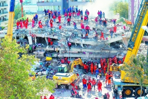 目前,救援人员仍在受损建筑附近进行搜救工作。此外,伊兹密尔的南部小镇瑟阿哲克地震后发生了海啸,1人溺亡。