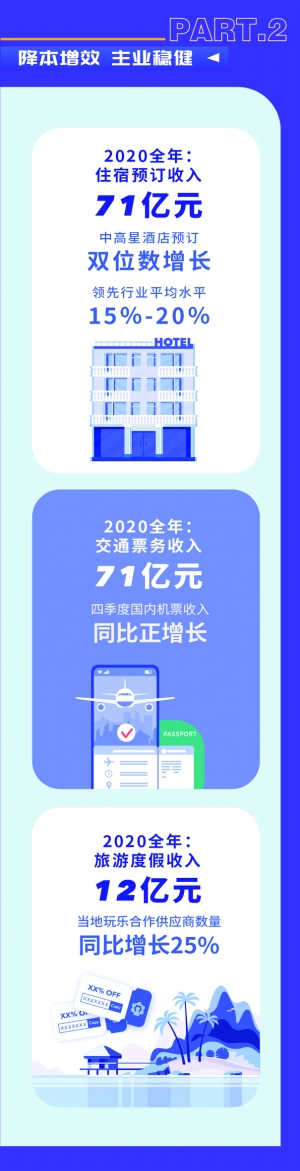 “我们也很高兴我们在广告收益方面也有了初步进展。”孙洁表示,2020年四季度来自国内旅游和其他合作伙伴的广告和营销收入同比显著增长,并且在全年保持正增长。