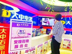 除了具有小额高频支付特点的果蔬店外,目前在石景山区的大中电器,也有不少消费者在购买金额较高的3C、家电产品时,尝试了数字人民币支付。
