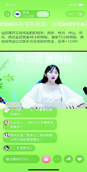自7月20日南京报告新增本土疫情病例以来,同程旅行客服直播间的观看量和评论区的咨询用户量较日常有了成倍的增长。