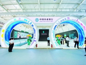 乡村振兴板块,通过“七大行动”推进金融产品创新,推动业务数字化转型,形成了具有特色的“三农”金融服务新品牌。普惠金融板块,展示了农业银行以服务实体经济为使命,加大普惠贷款投放力度,打造“惠农e贷”“小微e贷”“个人e贷”和“产业e贷”四项普惠金融金招牌。数字化转型板块,创新引领、科技赋能,以数字化手段服务民生、服务社会、服务实体经济,全面满足客户对互联网金融服务的需求。绿色金融板块,践行绿色发展理念,持续推进绿色产品服务,助力“碳达峰”和“碳中和”目标实现,以金融力量守护“绿水青山”。公司金融板块,全面展示农业银行积极服务国家重大区域战略和实体经济重点领域,在雄安新区、长三角一体化、粤港澳大湾区建设中,在支持现代化产业、新经济动能发展中,尽显农行人风采。个人金融板块,这里将展示农业银行以“金融+科技+数据”为驱动,为客户提供高效、便捷、流畅的个人金融服务。跨境金融板块,该板块是本次展览的重心,农业银行国际金融业务已有30余年的发展历史,领先的结算与融资效率、卓越的外汇交易能力、优良的外汇政策管理水平、全方位的跨境人民币服务产品,长期专注于支持企业涉外经营发展,为客户提供优质的跨境金融服务,推动银企合作共赢。