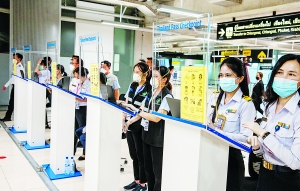 据法新社报道,在曼谷素万那普机场和普吉岛机场,身着防护服的工作人员当天清晨开始为入境游客办理相关手续。