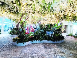 朝阳大悦城的“悦界”主题空间,会不定期开办不同主题的市集。去年12月20日-26日的活动上,聚集了不少红酒、美食和原创手作,侧侧也带着她的花摊参与其中。据侧侧介绍,这是她的花摊除了居家场景、商务楼宇之外,一种别样的合作选择。