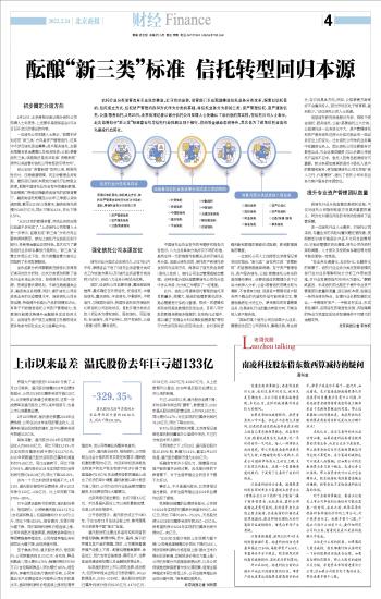“从2021年的数据来看,传统业务的压降已经差不多完成了。”上述信托公司知情人士进一步表示,监管划定“新三类”分级方向主要有两种原因,首先让信托行业找到区别于银行、券商等金融业态的特色,其次也为了避免信托业务和私募投行趋同化。“新三类”监管文件若正式下发,也代表着监管为信托公司指明了未来发展路径。