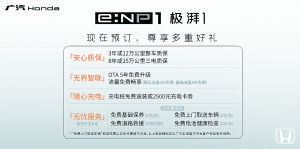 此外,为更好地为消费者服务,广汽本田还为用户制定了诚意满满的订车权益,在上市当天0点前预订e:NP1极湃1可享受四大预售权益,3年或12万公里整车质保;8年或15万公里三电质保,OTA 5年免费升级;流量免费畅享(娱乐流量3年免费、基础流量5年免费),充电桩免费送装或2500元充电卡券,五年慧享包:免费基础保养(2次/年)、免费上门取送车辆(2次/年)、免费道路救援(不限次数)、免费电池健康检查(2次/年)。