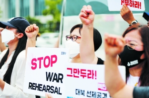 韩美两国军队22日正式启动下半年“乙支自由之盾”联合军演。韩国多个民间团体当天在首尔举行抗议集会。