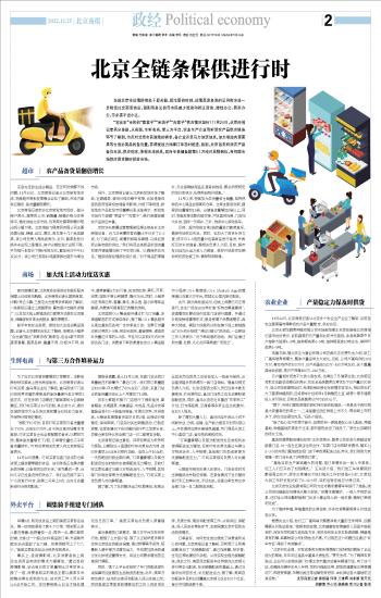 京东七鲜超市旗下门店进行了提前备货,副食粮油、水果蔬菜、肉禽蛋品、半成品、乳品冷饮等基础品进行3-4倍备货准备,对酒水饮料、休闲食品、火锅品类提高备货至平日的2倍,且保证价格稳定。保供期间,门店实时关注销售波动,已制定预案,在紧急情况下当日随时进行手工加单补货。总部仓库支持北京全部门店一日二配甚至多配。