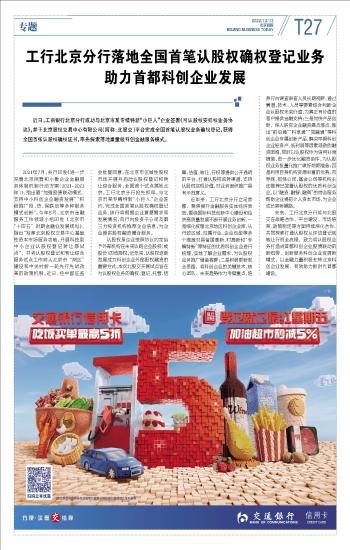 工行北京分行落地全国首笔认股权确权登记业务 助力首都科创企业发展