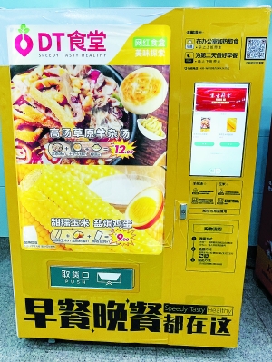 产品方面,该零售柜共提供两款套餐,分别为“羊杂汤+火烧+榨菜”和“玉米+鸡蛋+豆奶”的组合,售价分别为12元和9元。北京商报记者了解到,在售卖的产品中,羊杂汤为DT食堂自有品牌产品;截至4月底,DT食堂共在国贸、双井、十里河等地铁站投放了10个零售柜。