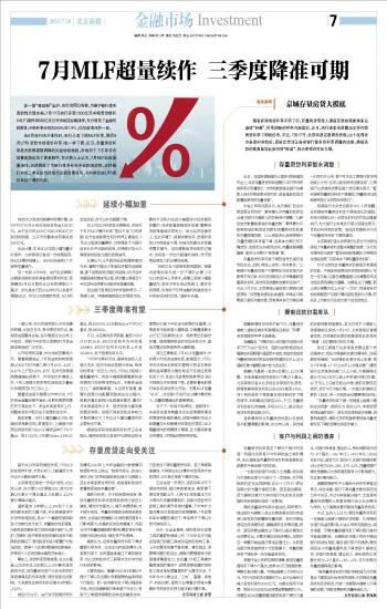7月MLF超量续作 三季度降准可期